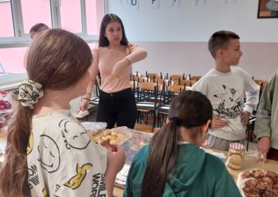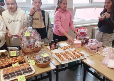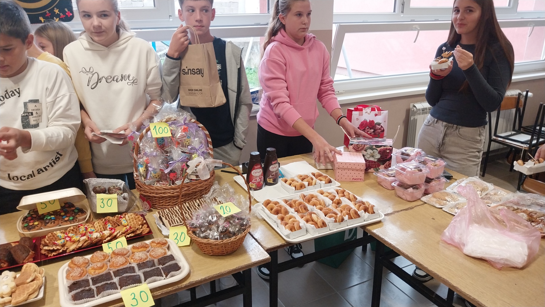 Ученици су донели разноврсну храну коју су продавали наставницима, другим ученицима и родитељима. Овом занимљивом активношћу показали су своју креативност, дружељубивост и предузимљивост, али и научили како изгледа права мала трговина. 🍪🥧🍎