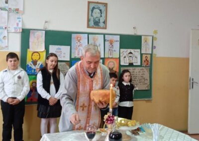 У пријатној и свечаној атмосфери, ученици су пригодним програмом подсетили на значај и вредности које нам је Свети Сава оставио у наслеђе.